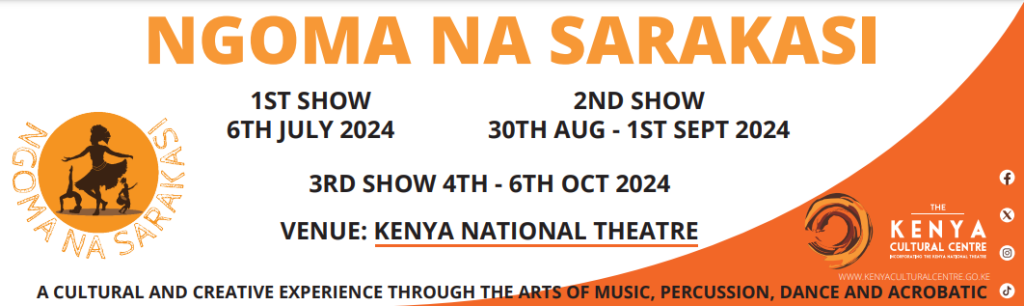 As part of our mandate, the Kenya Cultural Centre is running “Ngoma Na Sarakasi”, an artistic program that celebrates and promotes Kenya’s cultural heritage through percussion, dance, and acrobatics. In this regard, we humbly invite you to the Kenya Cultural Centre to watch